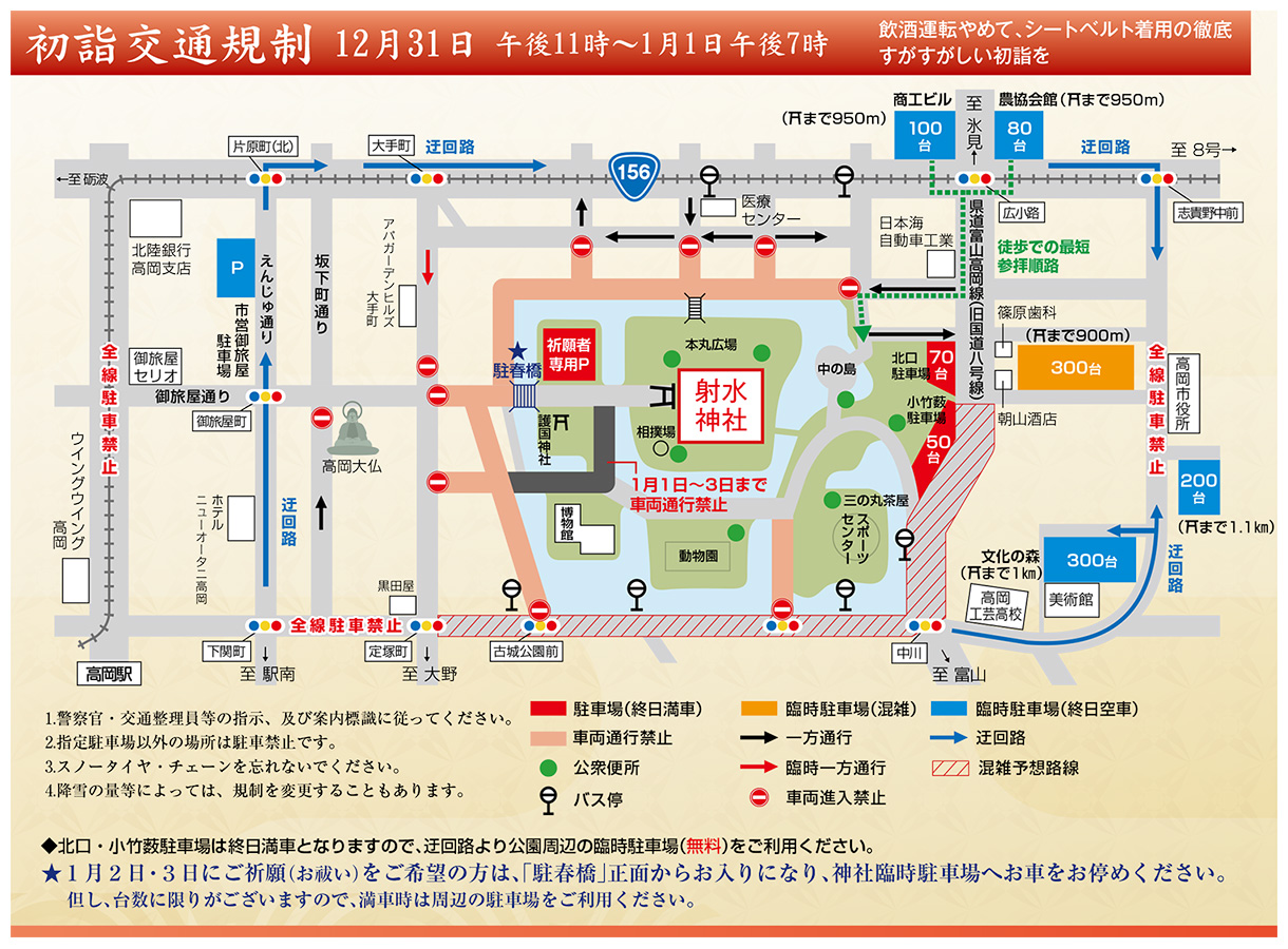 (JR北陸新幹線「新高岡駅」でJR城端線に乗換、普通列車約3分で「高岡駅」) - 能越自動車道「高岡IC」より車約15分