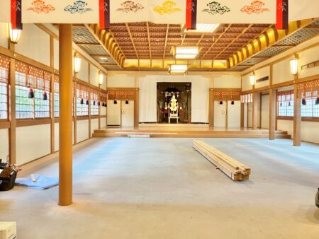 竣功後は、神前式の新たな舞台ともなります。ご崇敬・参拝の皆様に感動いただける神殿へと生まれ変わるまで、ぜひお楽しみにお待ち下さい。